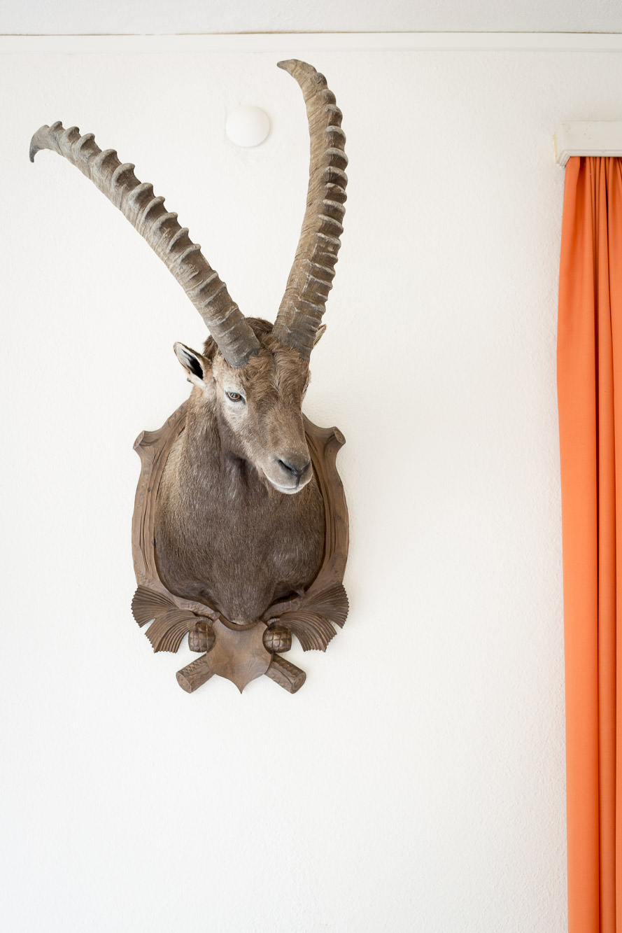 Ausgestopfter Steinbock im Saal des Hotel-Restaurant Macun.